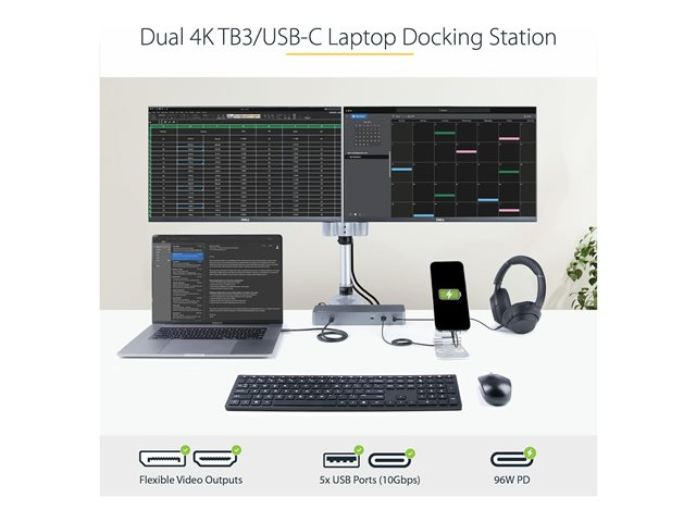 StarTech.com Dock Thunderbolt 3 Compatible Hôte USB-C - Écrans Double 4K 60Hz DP 1.4 ou Double HDMI - Simple 8K - Station d'Acceuil TB3/USB-C - 96W PD, 5xUSB - 10Gbps (TB3CDK2DHUE) - Station d'accueil - USB-C 3.2 Gen 2 / Thunderbolt 3 - 2 x HDMI, 2 x DP - 1GbE TB3CDK2DHUE