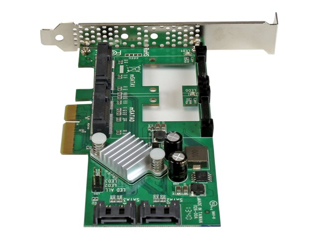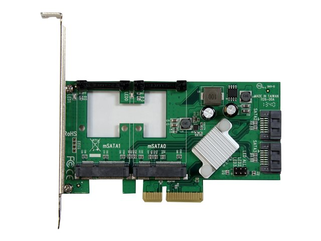 StarTech.com Carte contrôleur / Adaptateur PCI Express 2.0 RAID vers 2 ports SATA III 6 Gb/s avec 2 slots mSATA et HyperDuo SSD Tiering - Contrôleur de stockage (RAID) - 4 Canal - SATA 6Gb/s / mSATA - profil bas - RAID RAID 0, 1, 10, JBOD - PCIe 2.0 x4 - pour P/N: ST521PMINT