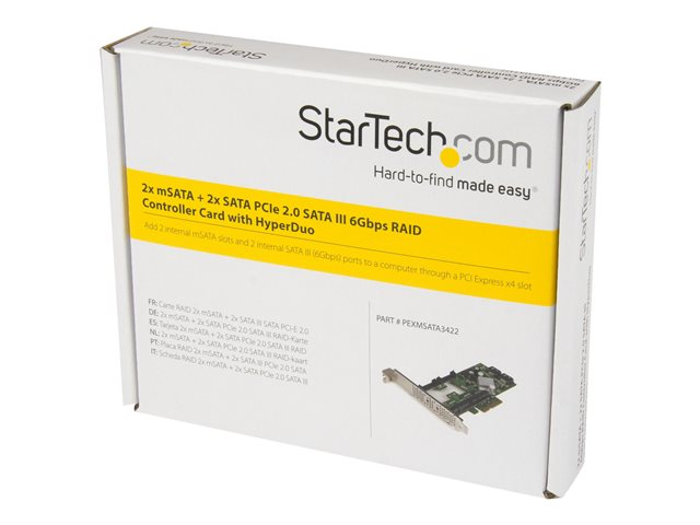 StarTech.com Carte contrôleur / Adaptateur PCI Express 2.0 RAID vers 2 ports SATA III 6 Gb/s avec 2 slots mSATA et HyperDuo SSD Tiering - Contrôleur de stockage (RAID) - 4 Canal - SATA 6Gb/s / mSATA - profil bas - RAID RAID 0, 1, 10, JBOD - PCIe 2.0 x4 - pour P/N: ST521PMINT PEXMSATA3422