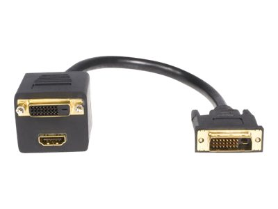 StarTech.com Cable en Y DVI-D vers DVI-D et HDMI de 30 cm - Répartiteur video - liaison double - DVI-D, HDMI femelle pour DVI-D mâle - 30.5 cm - blindé - noir - pour P/N: CDP2DVIMM2MB, DKT30CDVPD, DP2DVI2MM3, DP2DVI2MM6, DP2DVIMM6BS, DP2DVIMM6X10, HDDVIMM3 DVISPL1DH