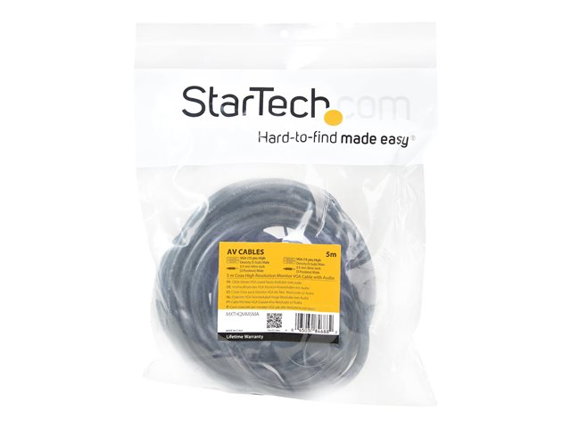 StarTech.com Câble vidéo coaxial pour écran VGA haute résolution 5 m avec audio HD15 M/M - Câble VGA - HD-15 (VGA), mini-phone stereo 3.5 mm (M) pour HD-15 (VGA), mini-phone stereo 3.5 mm (M) - 5 m - moulé, vis moletées - noir MXTHQMM5MA