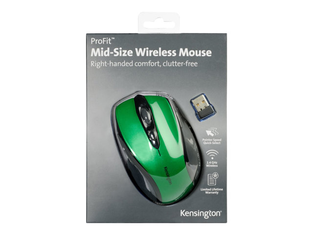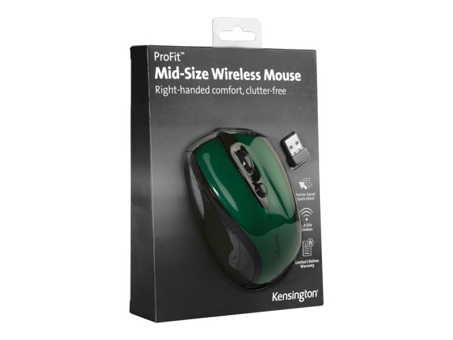 Kensington Pro Fit Mid-Size - Souris - pour droitiers - optique - sans fil - 2.4 GHz - récepteur sans fil USB - Vert émeraude K72424WW