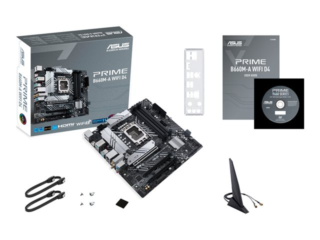 ASUS PRIME B660M-A WIFI D4 - Carte-mère - micro ATX - Socket LGA1700 - B660 Chipset - USB 3.2 Gen 1, USB 3.2 Gen 2, USB-C 3.2 Gen 1 - Gigabit LAN, Wi-Fi 6, Bluetooth - carte graphique embarquée (unité centrale requise) - audio HD (8 canaux)