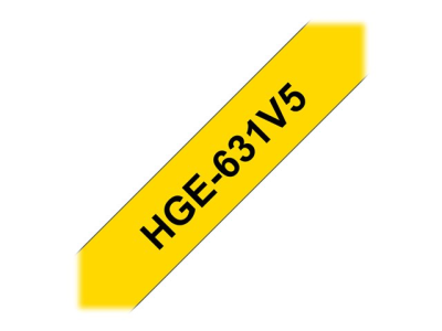 Brother HGE-631V5 - Noir sur jaune - Rouleau (1,2 cm x 8 m) 5 cassette(s) ruban laminé - pour P-Touch PT-9500pc, PT-9700PC, PT-9800PCN