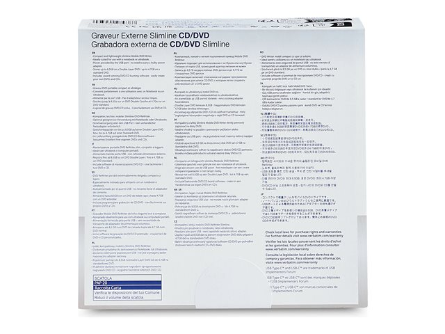 Un nombre croissant de fournisseurs d'ordinateurs portables choisissent de laisser le lecteur optique en dehors de leurs ordinateurs portables et de privilégier les coupes minces. Les CD et les DVD restent toutefois l'un des types de médias le plus couramment utilisé. Verbatim offre la solution avec son graveur CD/DVD externe ultramince.