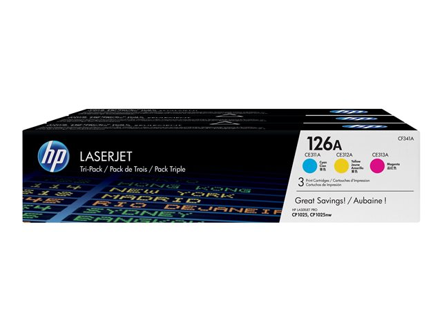 HP 126A - Pack de 3 - jaune, cyan, magenta - original - LaserJet - cartouche de toner (CF341A) - pour Color LaserJet Pro CP1025; LaserJet Pro MFP M175; TopShot LaserJet Pro M275