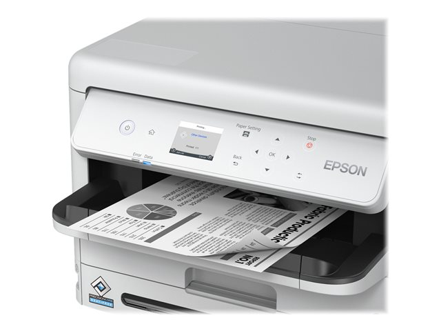 La nouvelle imprimante WorkForce Pro WF–M5399DW vous permet de bénéficier d'une faible consommation électrique, d'un coût total de possession (TCO) particulièrement bas, d'un temps de sortie de la première page (FPOT) très court et de fonctionnalités conçues pour faciliter son intégration dans l'infrastructure de votre entreprise. Cette imprimante Jet d'Encre Professionnel bénéficie de l'impression recto verso automatique, ce qui rend n'importe quel travail facile et efficace. Elle est en outre compatible avec les langages de description de page, y compris PCL et PostScript 3.