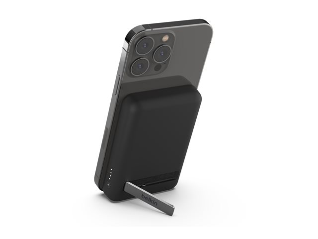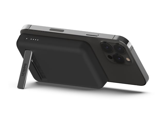Cette banque d'alimentation sans fil magnétique portable 5K + support délivre une puissance de charge sans fil de 7,5 W à votre appareil, sans câble ni besoin de le connecter à une source d'alimentation. Le support pliable offre un moyen pratique et mains libres de diffuser des flux ou de passer des appels vidéo pendant que vous chargez.