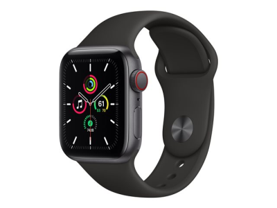Apple Watch SE (GPS + Cellular) - 40 mm - espace gris en aluminium - montre intelligente avec bande sport - fluoroélastomère - noir - taille du bracelet : S/M/L - 32 Go - Wi-Fi, Bluetooth - 4G - 30.68 g