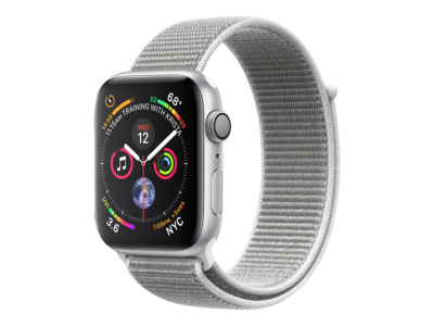 Apple Watch Series 4 (GPS) - 44 mm - aluminium argenté - montre intelligente avec boucle sport - nylon tissé - coquillage - taille de bande 145-220 mm - 16 Go - Wi-Fi, Bluetooth - 36.7 g