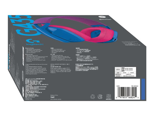 Logitech Lightspeed G435 - Micro-casque - circum-aural - fréquence/Bluetooth radio de 2,4 GHz - sans fil - bleu - Certifié Discord