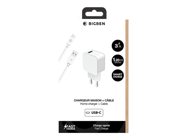 BigBen Connected - Adaptateur secteur - 3 A - Smart IC (USB) - sur le câble : USB-C - blanc