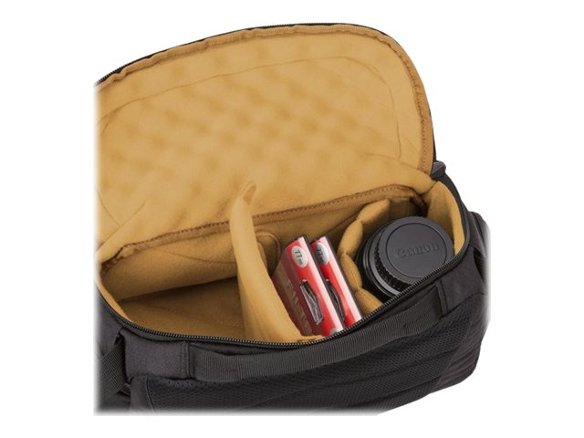 Le sac à bandoulière/porté épaule polyvalent offre le bon niveau de rangement et de protection pour un appareil photo reflex avec 1 ou 2 objectifs supplémentaires.