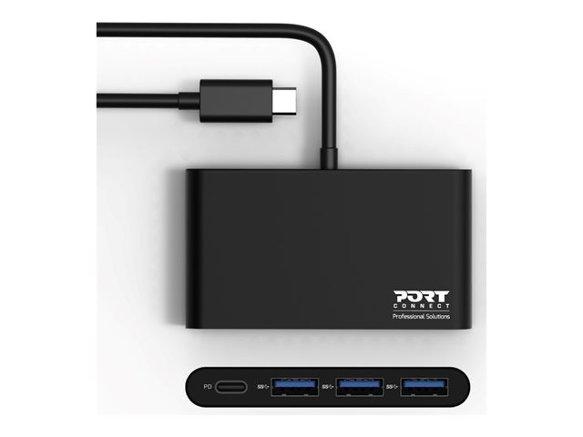 PORT Connect - Concentrateur (hub) - 3 x SuperSpeed USB 3.0 + 1 x USB-C - de bureau
