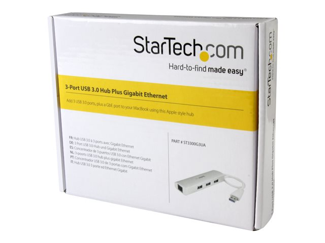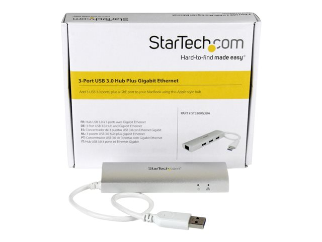 StarTech.com Hub USB 3.0 portable à 3 ports avec Gigabit Ethernet - Concentrateur USB 3.0 GbE avec boîtier en aluminium et câble intégré - Concentrateur (hub) - 3 x SuperSpeed USB 3.0 + 1 x 10/100/1000 ST3300G3UA