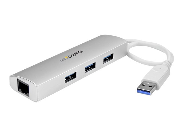 StarTech.com Hub USB 3.0 portable à 3 ports avec Gigabit Ethernet - Concentrateur USB 3.0 GbE avec boîtier en aluminium et câble intégré - Concentrateur (hub) - 3 x SuperSpeed USB 3.0 + 1 x 10/100/1000